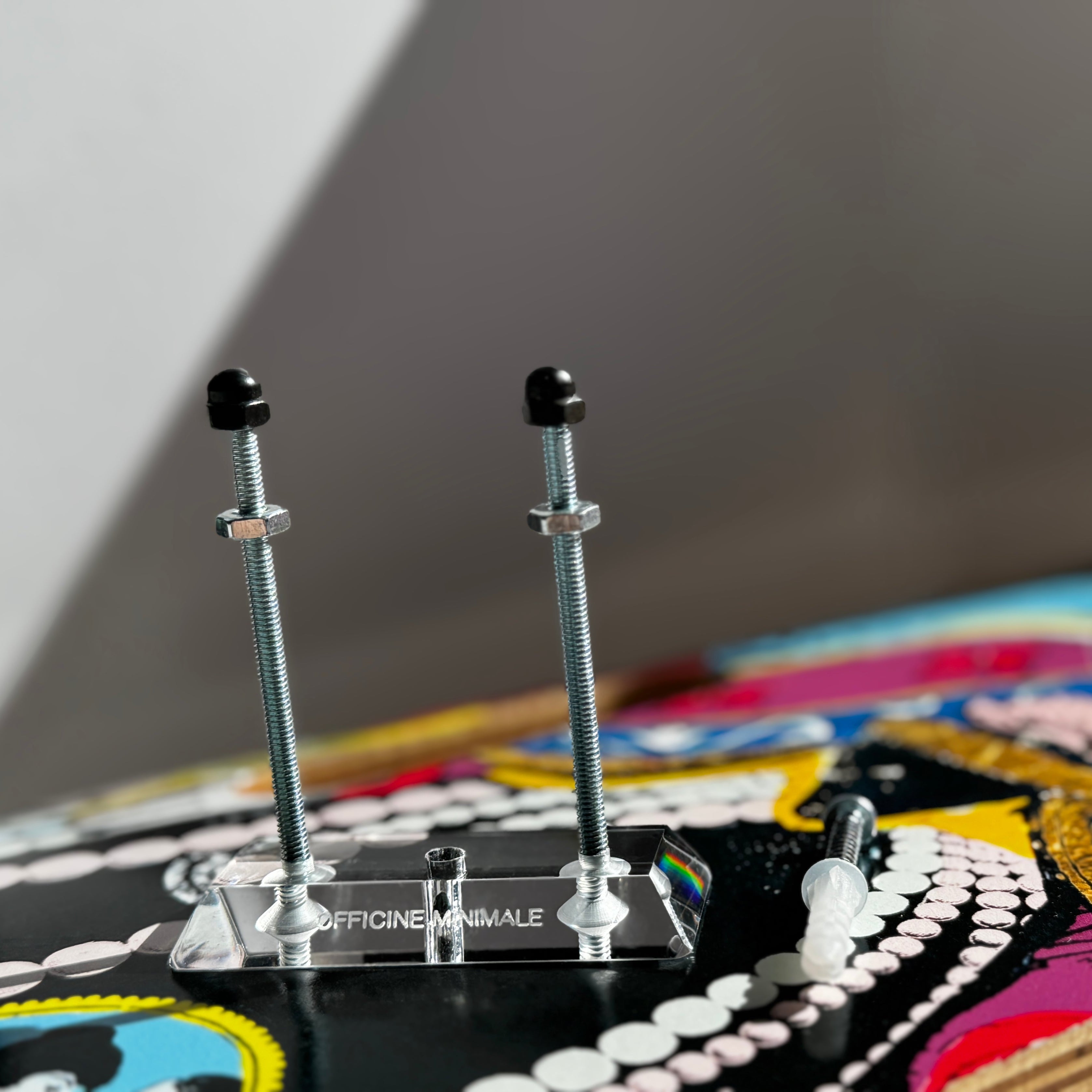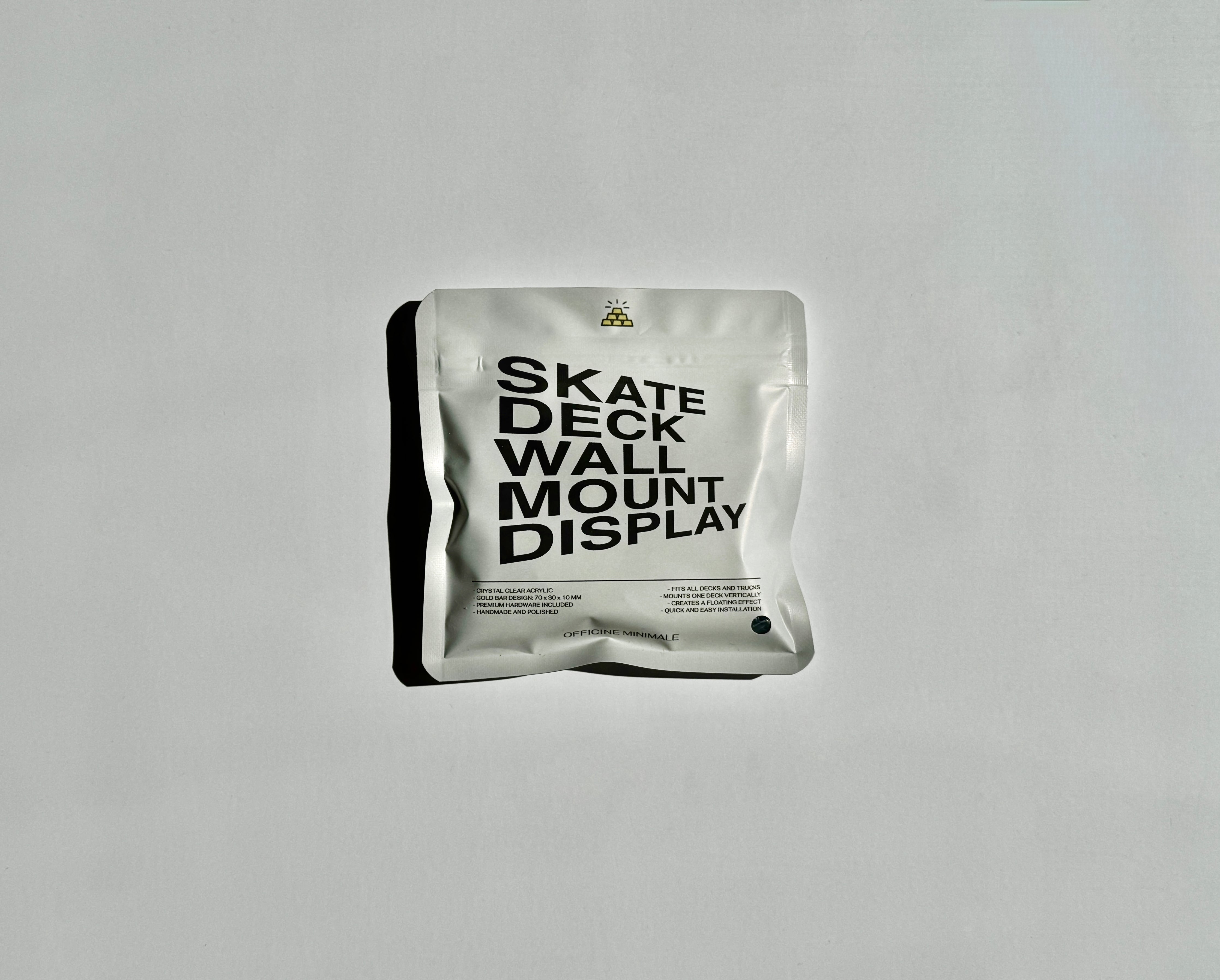 Inspired by the clean, geometric form of a gold bar. Crafted for collectors who value minimalism and quality, this mount provides a secure, floating vertical display—perfect for artists showcasing skateboard decks in gallery settings. The hanger your favourite decks need. Fill your wall space with art in minutes. Premium and solid piece, the best for your collection.